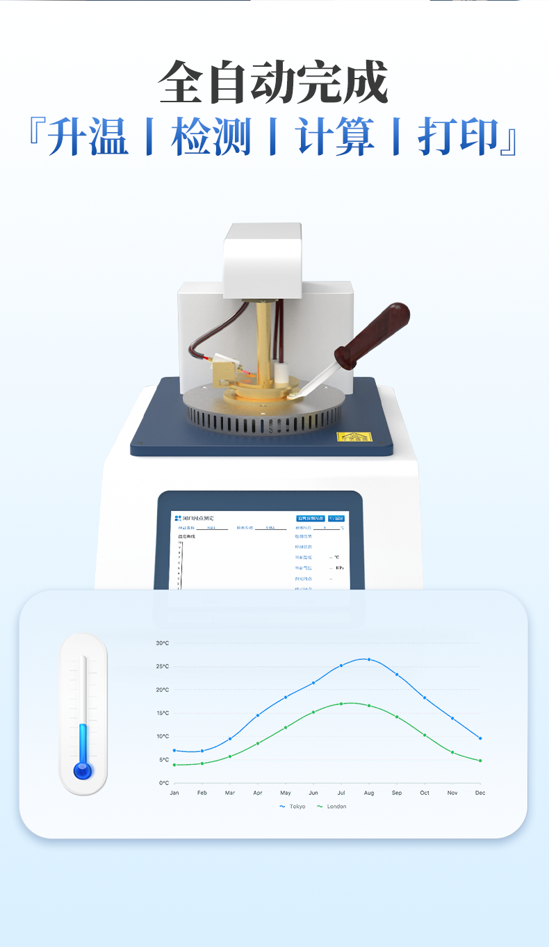 儀器按照GB/T 261-2021方法規(guī)定的升溫曲線加熱,溫度接近預(yù)期閃點(diǎn)值時自動點(diǎn)火,當(dāng)出現(xiàn)閃點(diǎn)時儀器自動鎖定結(jié)果,并顯示和打印,同時啟動風(fēng)機(jī)自動對加熱器進(jìn)行冷卻。