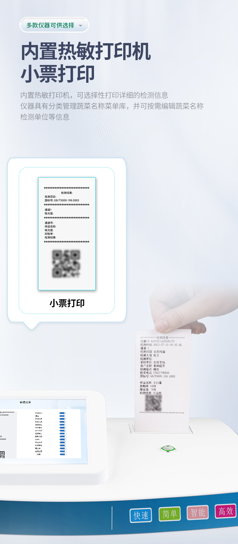 8、內(nèi)置熱敏打印機(jī),可選擇性打印詳細(xì)的檢測(cè)信息。