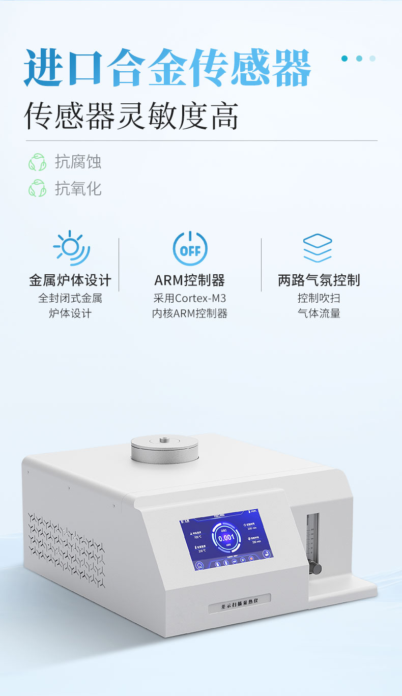測量與熱量有關(guān)的物理、化學變化,如玻璃化轉(zhuǎn)變溫度、熔點、熔融溫度、結(jié)晶與結(jié)晶熱、相轉(zhuǎn)變反應(yīng)熱,產(chǎn)品的熱穩(wěn)定性、固化/交聯(lián)、氧化誘導期等。