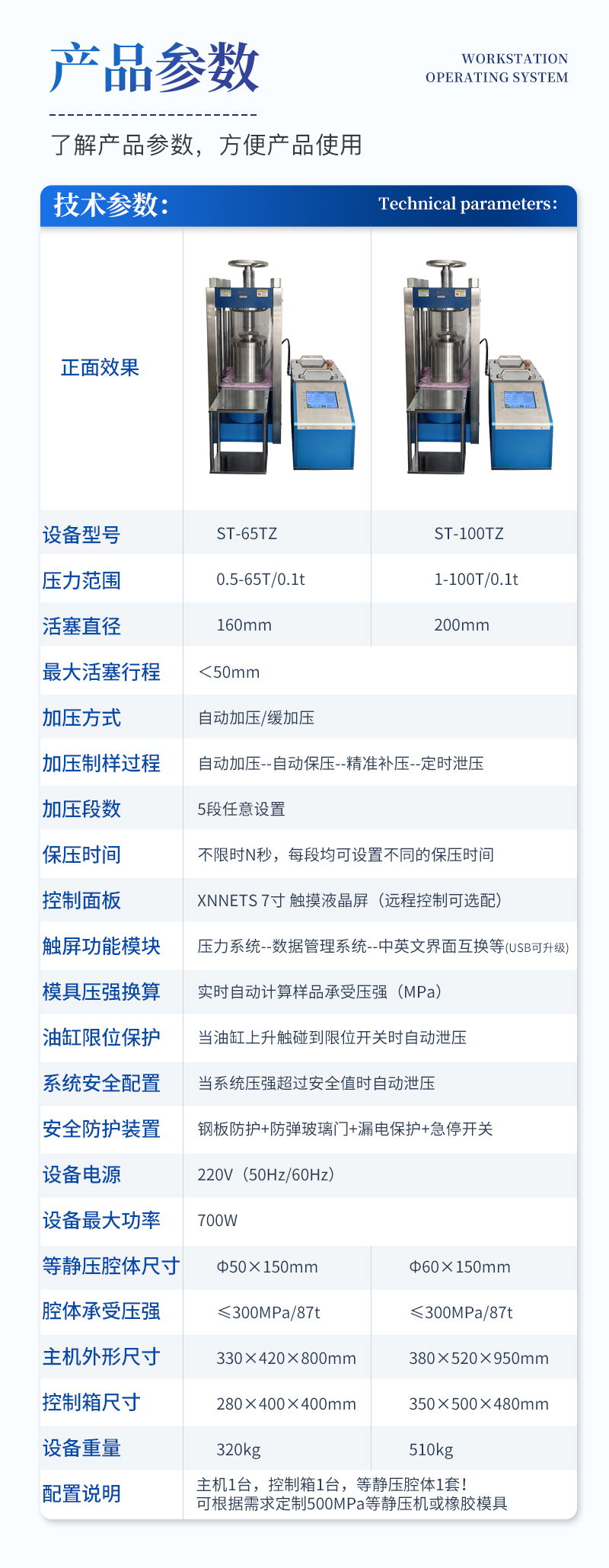 | 配置說明 | 主機(jī)1臺(tái),控制箱1臺(tái),等靜壓腔體1套!可根據(jù)需求定制500MPa等靜壓機(jī)或橡膠模具 |